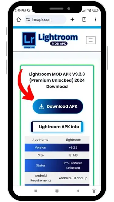 To get started with how to download and install Lightroom MOD APK v10.1.0, follow these easy steps to install it safely and quickly on your Android device. This is exactly how I did it on my phone without any trouble, and you don’t need any technical skills. Just stay focused and use the right options at each stage to avoid problems during installation.Go to the top of this page and click the Download APK button to begin the Download.