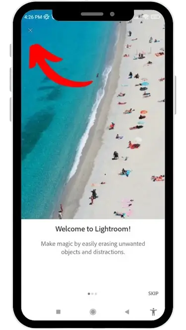 On the login screen, tap the “X” sign at the top corner to avoid login—now your Lightroom MOD APK is fully ready to use.